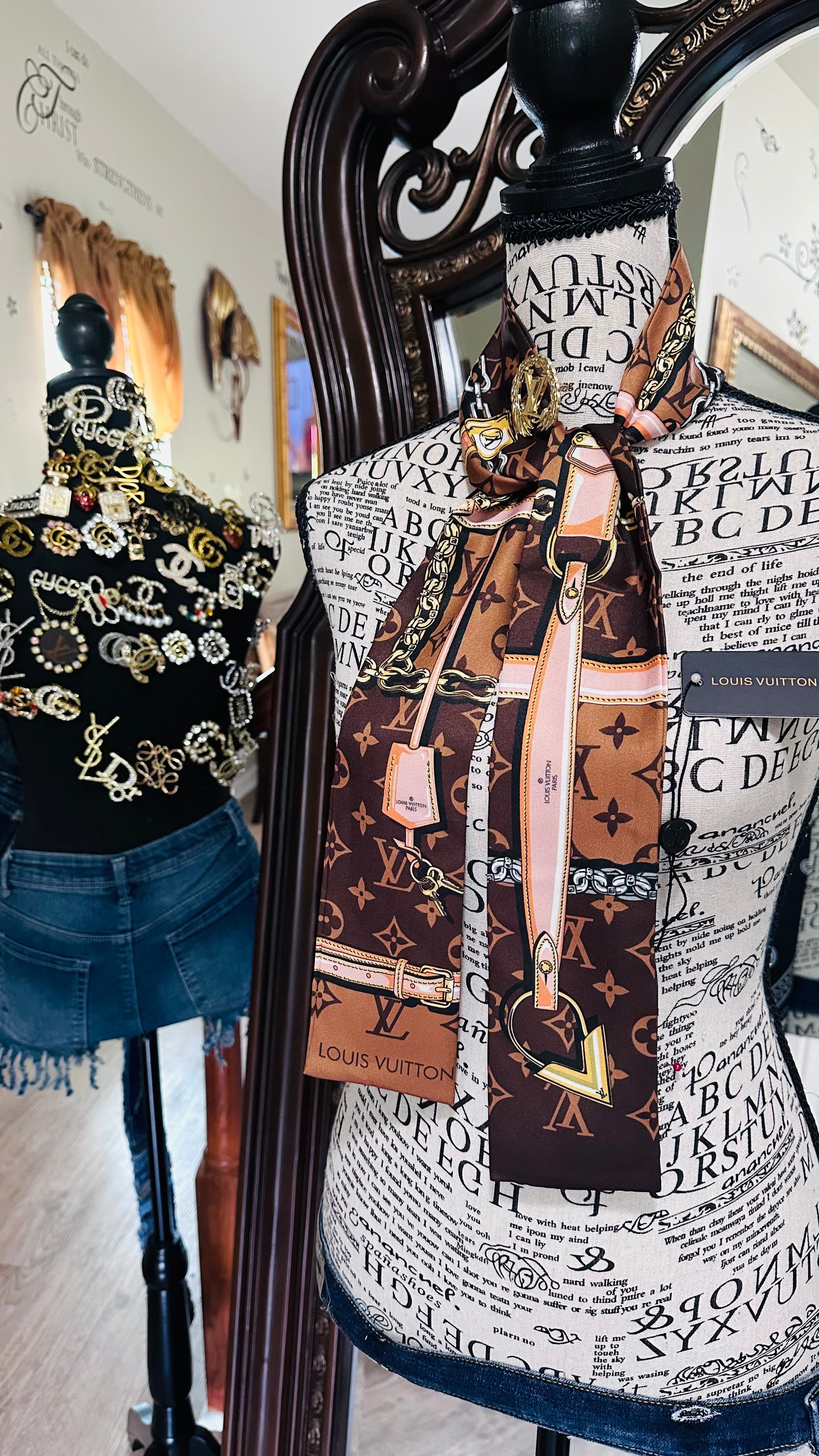 This elegant scarf brooch in brown and pink adds a touch of sophistication to any outfit. Made with high-quality materials, it features a classic design that will elevate your style. The perfect accessory for adding a pop of color and elegance to your wardrobe.