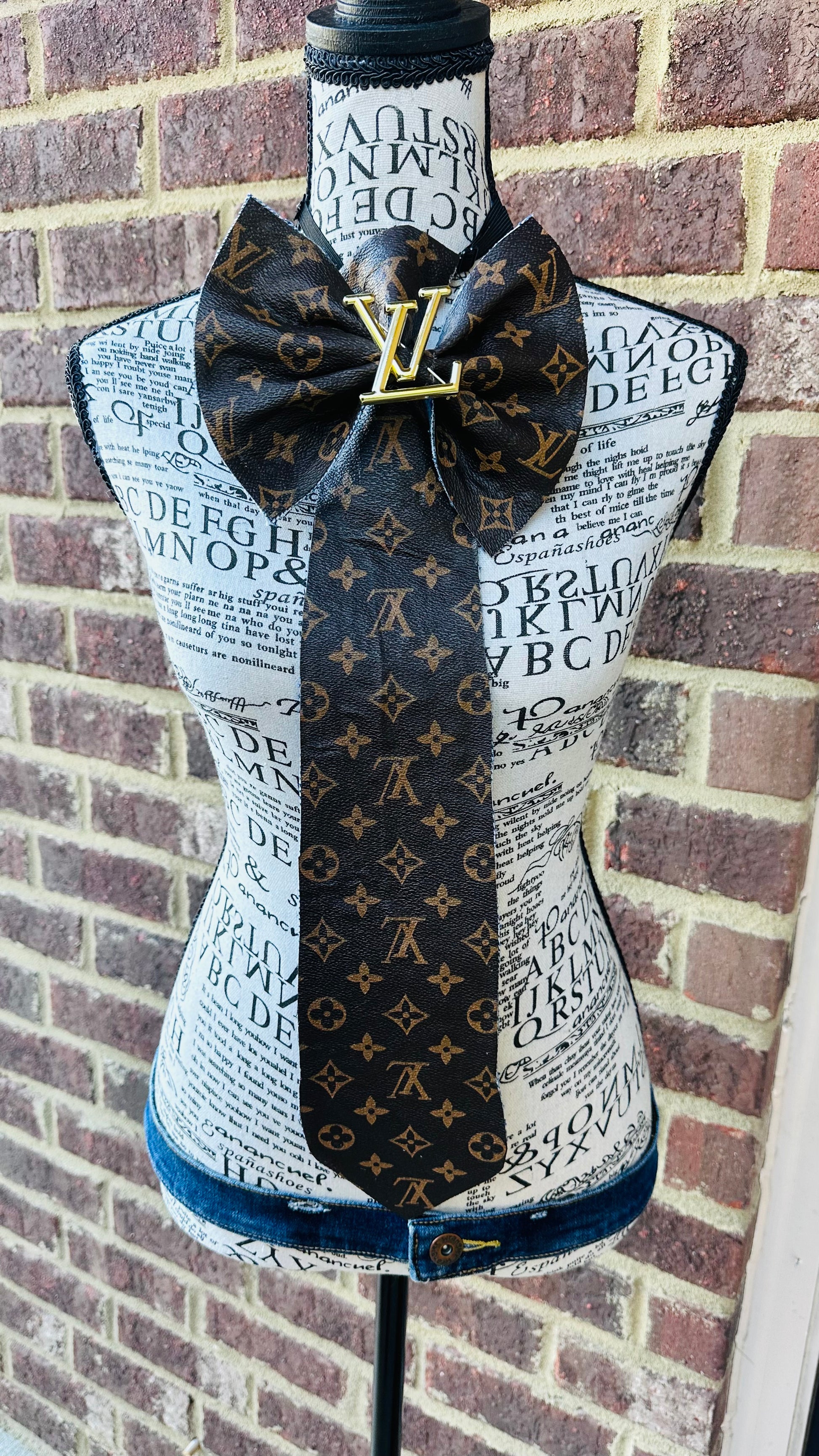 Elevate your style with our Dark Chocolate Brownie Leather & Denim Distressed Bowtie Necktie. Crafted from premium leather and distressed denim, this necktie adds a touch of edginess to any outfit. The perfect accessory for the fashion-forward individual seeking a luxurious and exclusive look.