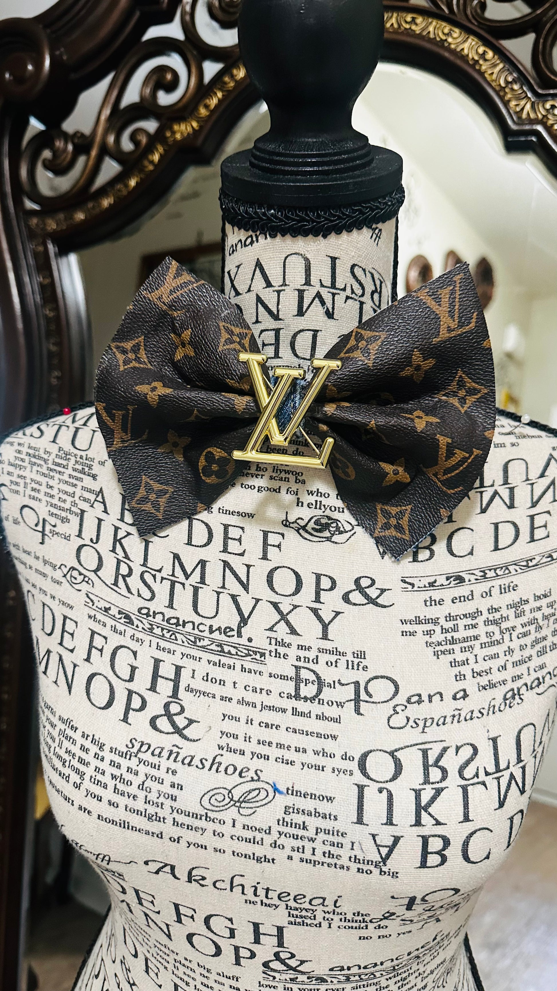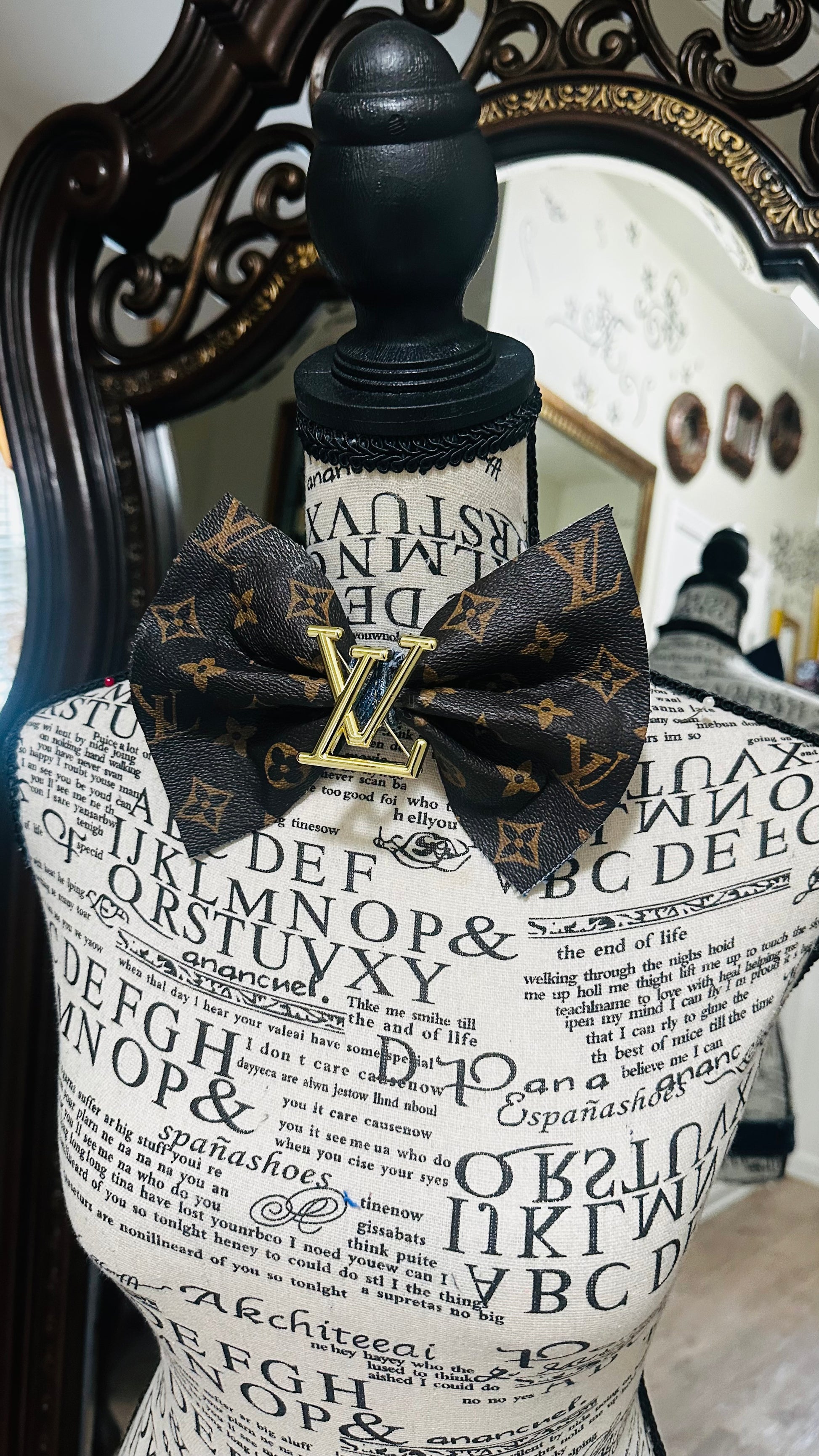 Indulge in our luxurious Dark Chocolate Leather LaVonta with Caramel Drizzle Denim Bowtie, adorned with a stunning center brooch (style may vary). A decadent treat with a touch of elegance and sophistication. Perfect for the discerning palate and fashion-forward individual. Elevate any occasion with this exquisite creation.