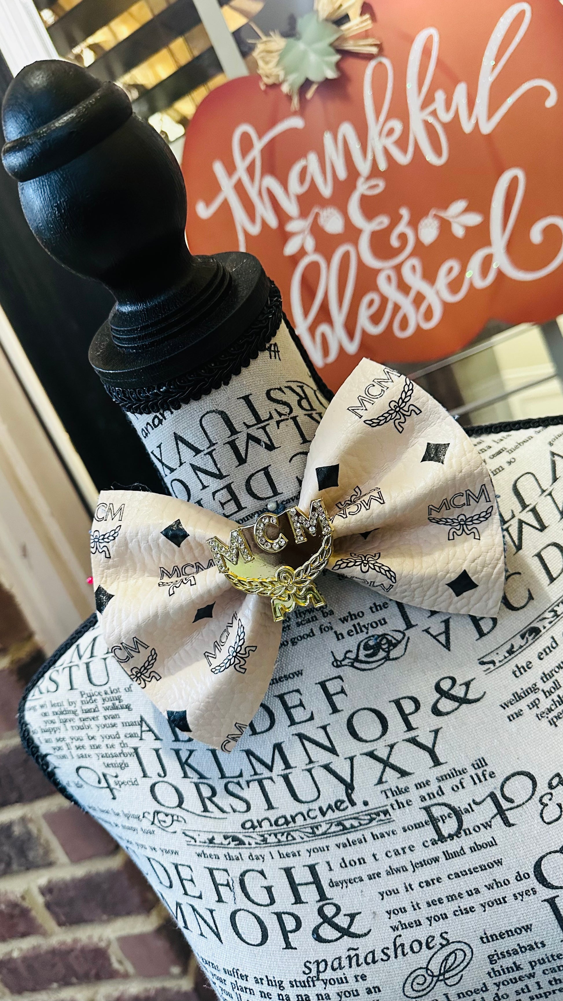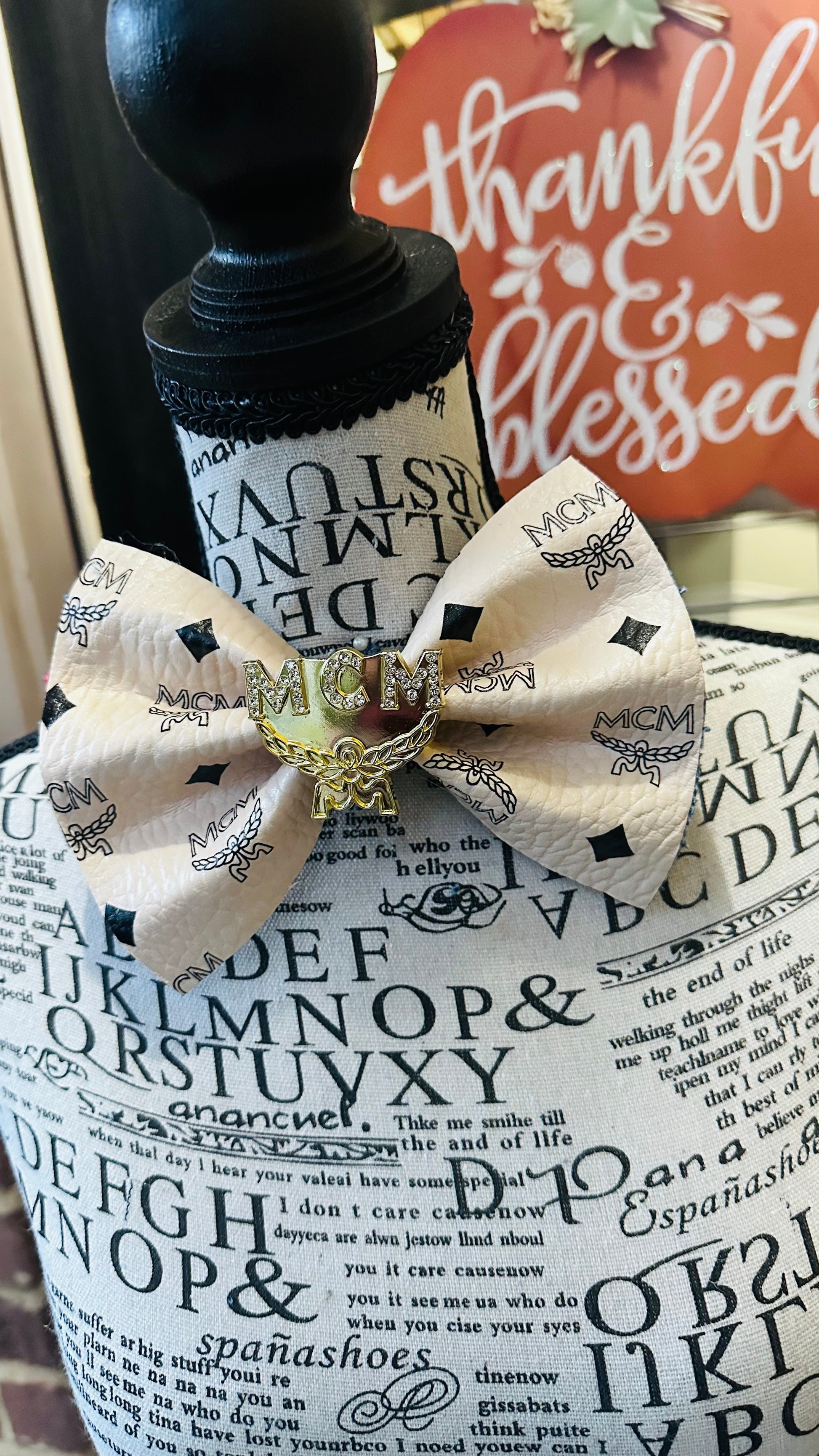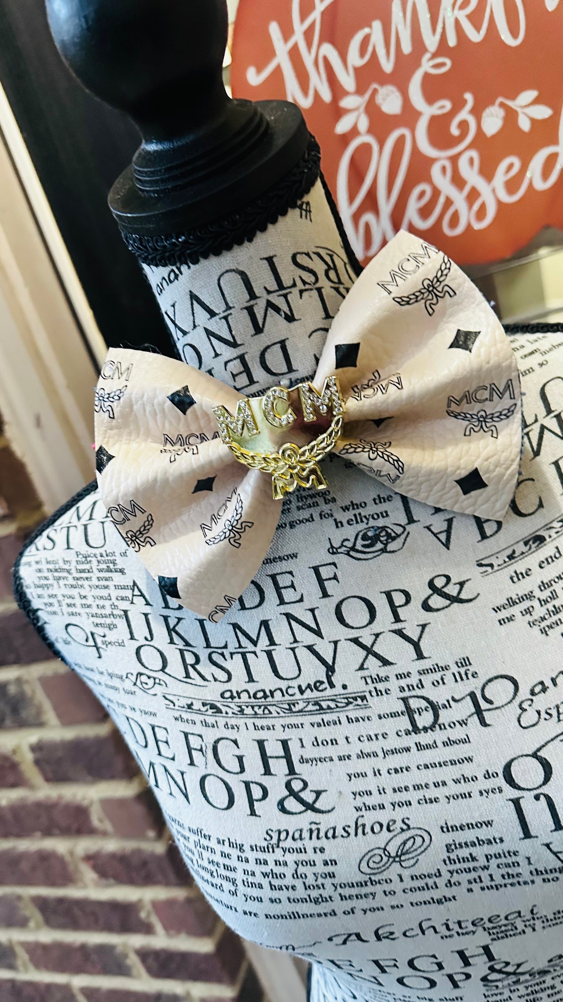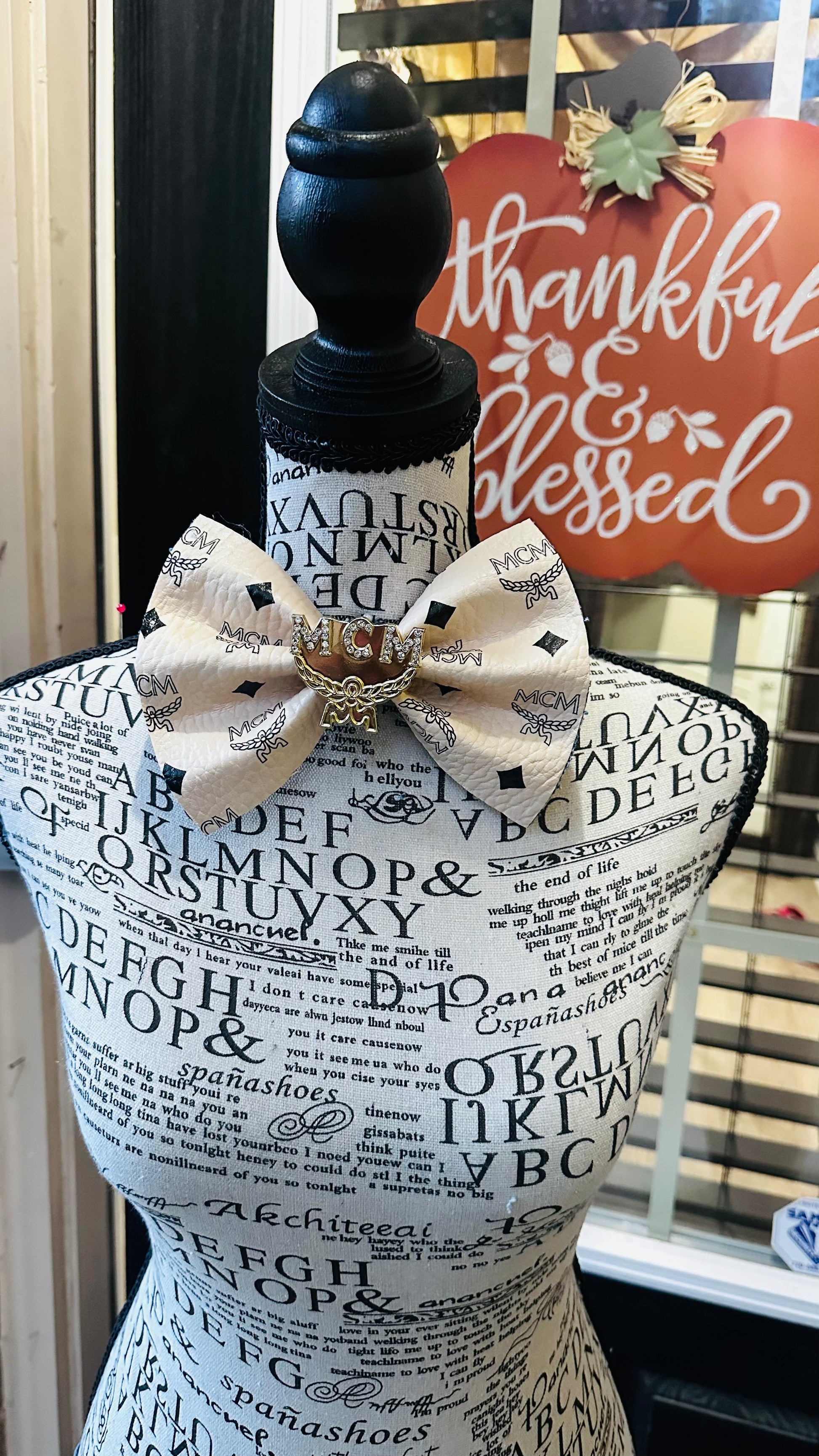 Light Pink - Peachy Pink Leather Denim Bowtie with center brooch